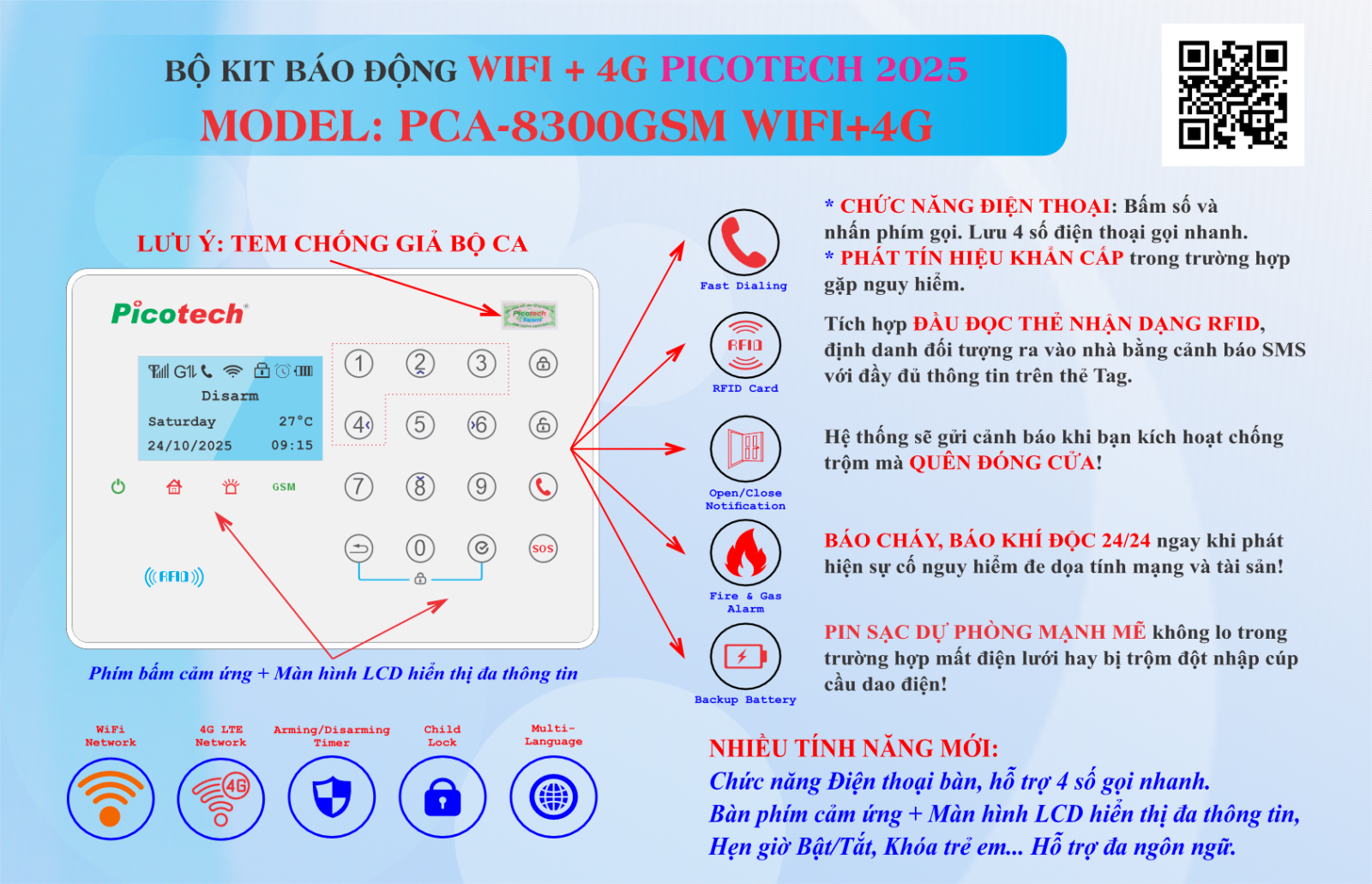 (HOT) TRUNG TÂM BÁO ĐỘNG PICOTECH PCA-8300GSM WIFI+4G – THÊM CHỨC NĂNG NHƯNG GIÁ KHÔNG ĐỔI