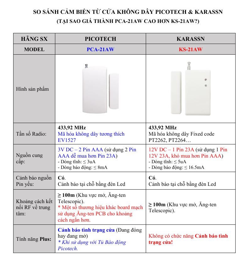 “Hai mẫu từ cửa không dây PCA-21AW và KS-21AW trông khá giống nhau, cùng là cảm biến mở cửa – tại sao giá PCA-21AW lại cao hơn?”